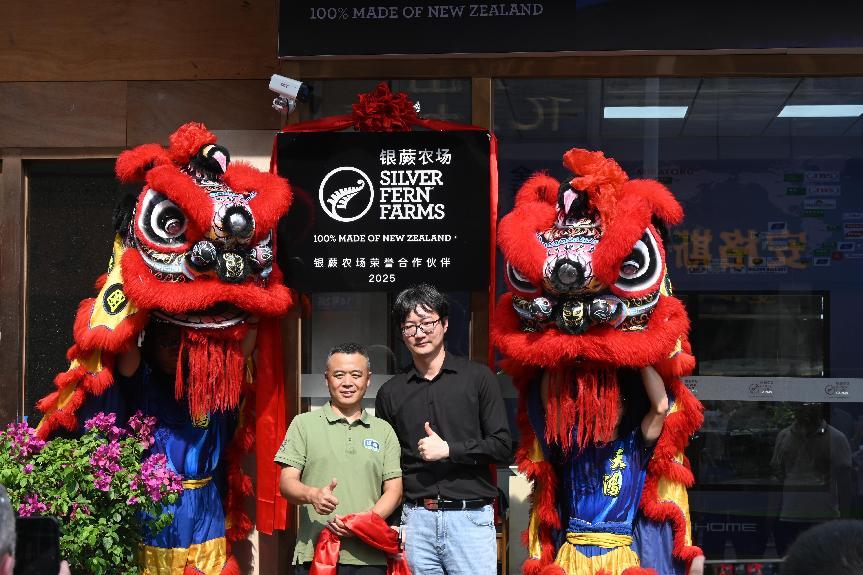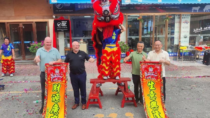 在这个令人振奋的时刻,具有广东特色的舞狮团队登场助兴,瞬间点燃了现场的气氛。银蕨农场首席客户官戴夫・考特尼先生等人为雄狮金睛点睛,寓意着智慧开启,银蕨常青。随后,嘉宾们为瑞狮赐福,接财纳瑞,狮口吐珠。跃动的雄狮,仿佛要为合作踏出一条黄金大道。